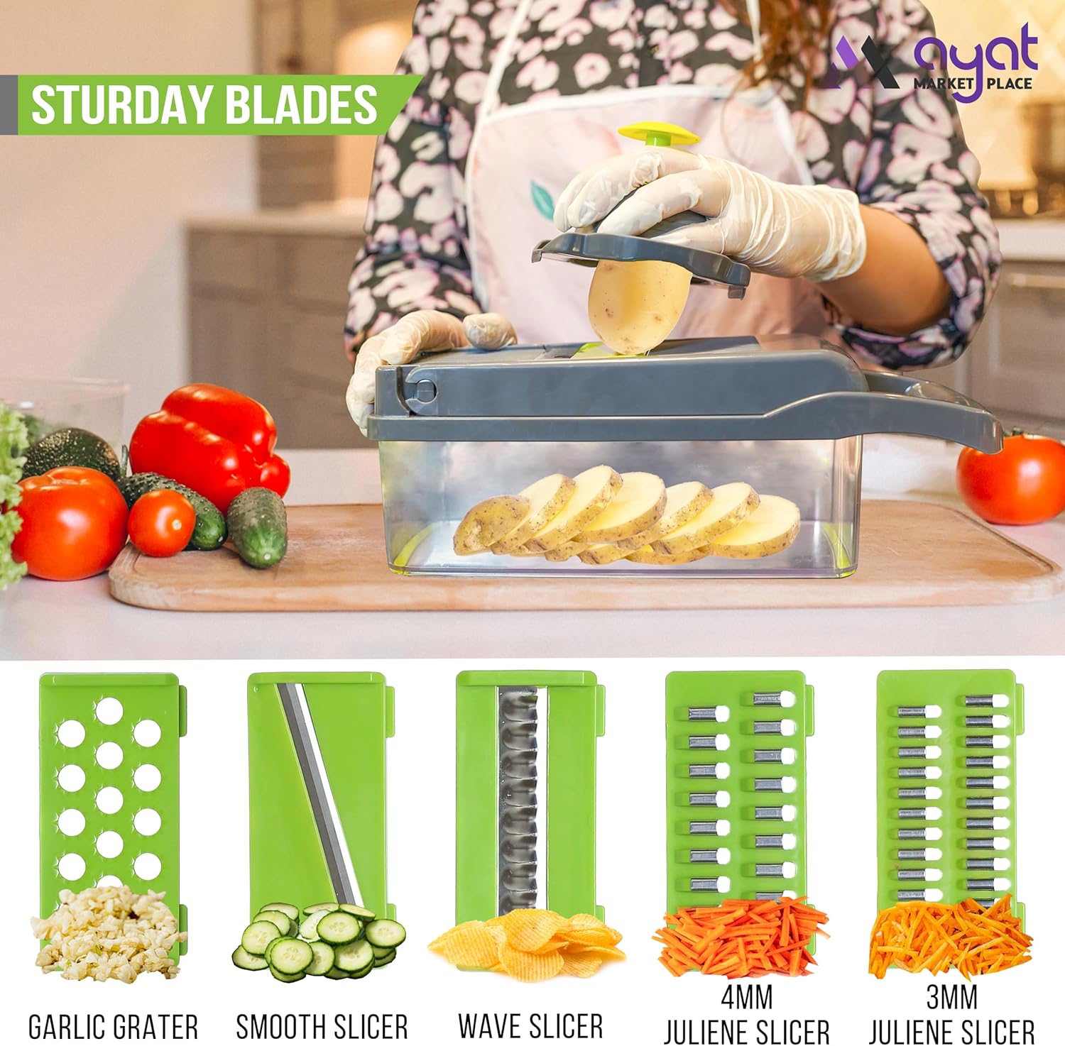Answer 2: Absolutely! With its eight interchangeable blades, this chopper dramatically reduces the time it takes to chop, slice, and grate ingredients, transforming what used to be hours of prep into mere seconds. This means you'll have more time to enjoy meals with your family.